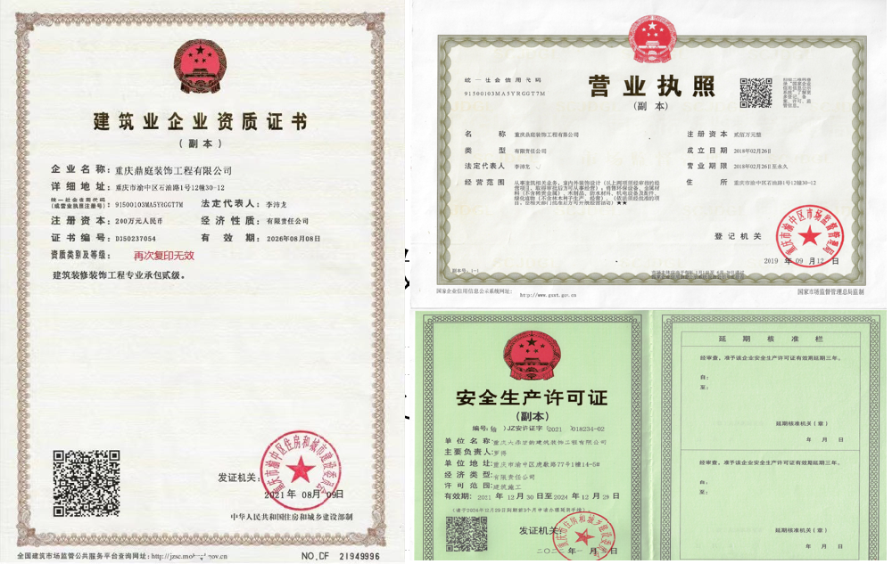 重慶鼎庭裝飾是一家具有裝飾協會權威認證的裝修二級施工資質企業.公司以設計、施工為一體,致力于為客戶打造高品質的綜合公裝項目.聯系電話:17623066466主營業務商業空間室內裝飾:憑借專業的設計團隊和精湛的施工技藝,為各類商業場所賦予獨特的魅力和個性.裝修項目包括《工業園區辦公樓廠房裝修,宿舍樓裝修,酒店裝修,辦公室裝修,美容院裝修,醫院診所裝修,學校幼兒園裝修,廠房裝修,超市裝修,口腔診所裝修,養老院裝修,足療洗浴會所裝修,連鎖店裝修》等公司核心優勢1.專業資質:擁有裝飾協會頒發的二級施工資質,確保施工質量和工程安全。2.設計施工一體化:專業的設計團隊與經驗豐富的施工隊伍緊密合作,實現從設...